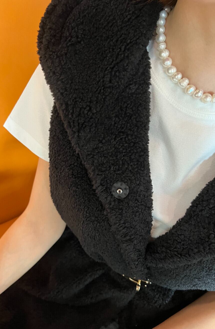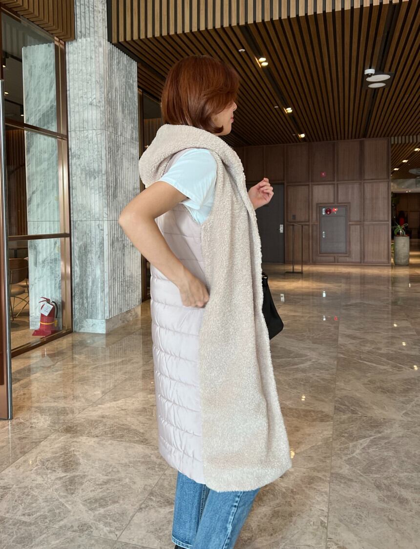 フロントは柔らかいボア素材でバックスタイルは6オンスのダウンベストです。